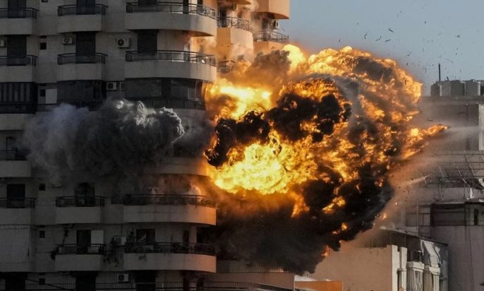 مشاهد مرعبة توثق لحظة استهداف المبنى في #الشياح pic.twitter.com/lQssyMj3Fz