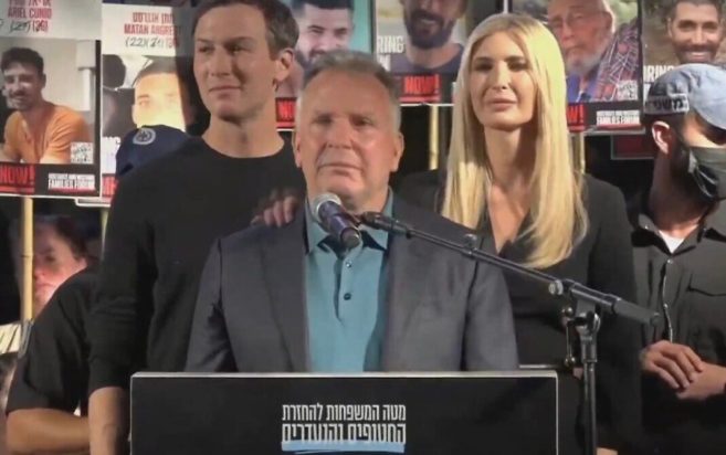 Ο Τζάρεντ Κούσνερ παρότρυνε κάθε προσπάθεια για να γίνει η περιοχή ειρηνική και χαιρέτισε τους “καταπληκτικούς” στρατιώτες των IDF. Η Ιβάνκα Τραμπ δήλωσε ότι “εντυπωσιάστηκε από τη δύναμη” των οικογενειών των ομήρων, και είπε ότι ο πρόεδρος των ΗΠΑ “στέκεται πάντα μαζί σας”.