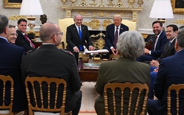 Ο Τραμπ ήταν μαζί με τον αντιπρόεδρο Τζέι Ντι Βανς, τον υπουργό Εξωτερικών Μάρκο Ρούμπιο, τον υπουργό Άμυνας Πιτ Χέγκσεθ, τον ειδικό απεσταλμένο Στιβ Γουίτκοφ και τον γαμπρό του Τζάρεντ Κούσνερ. Άρχισε η συνέντευξη Τύπου.