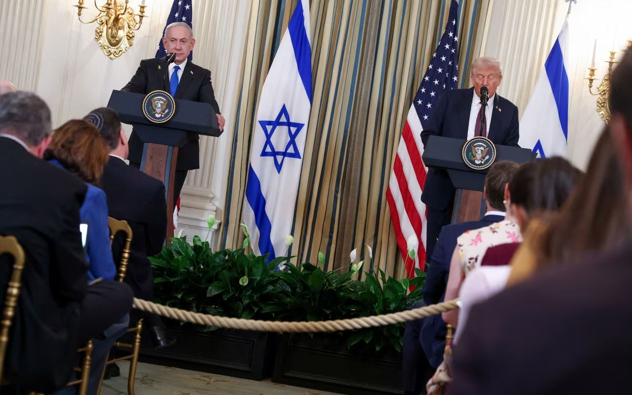 Ολοκληρώθηκε στον Λευκό Οίκο η συνάντηση του προέδρου Ντόναλντ Τραμπ με τον πρωθυπουργό του Ισραήλ Μπενιαμίν Νετανιάχου, συνάντηση που θεωρείται κρίσιμη για το μέλλον της πρότασης των ΗΠΑ που αφορά σε εκεχειρία στην Γάζα. Οι δύο ηγέτες επάινεσαν ο ένας τον άλλον και συμφώνησαν σε σχέδιο 20 σημείων. Με πολύ επιτακτικό τρόπο σχεδόν εκβιαστικά κάλεσαν και την Χαμάς να συμφωνήσει. Μετά την συνάντηση, ο Αμερικανός πρόεδρος και ο Ισραηλινός πρωθυπουργός παραχώρησαν συνέντευξη Τύπου.
