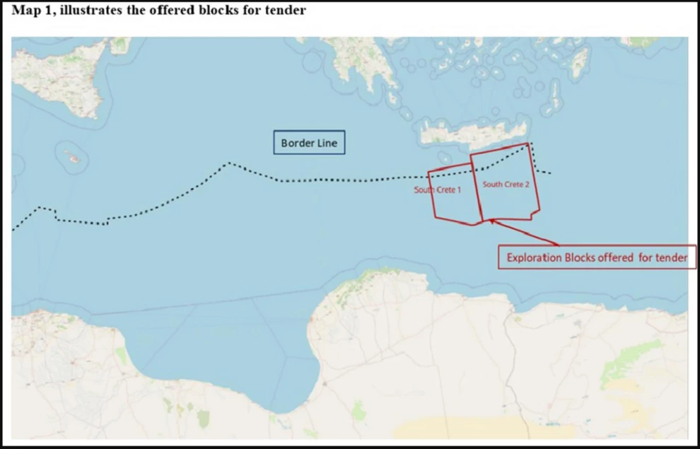 - Δύο από τις ανακοινωθείσες περιοχές, Κρήτη 1 και Κρήτη 2, βρίσκονται γεωγραφικά εντός των λιβυκών θαλάσσιων περιοχών (επί των οποίων οι δύο χώρες διατηρούν διαφορετικές διεκδικήσεις). Η συνολική έκταση των δύο περιοχών είναι 23.300 km² και πάνω από το 85% αυτής της έκτασης βρίσκεται νότια της γραμμής οριοθέτησης που χωρίζει τη Λιβύη από τη γειτονική της, την Ελλάδα.