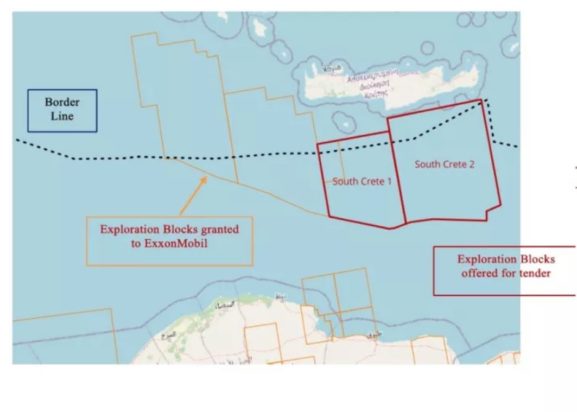 - Δύο από τις ανακοινωθείσες περιοχές, Κρήτη 1 και Κρήτη 2, βρίσκονται γεωγραφικά εντός των λιβυκών θαλάσσιων περιοχών (επί των οποίων οι δύο χώρες διατηρούν διαφορετικές διεκδικήσεις). Η συνολική έκταση των δύο περιοχών είναι 23.300 km² και πάνω από το 85% αυτής της έκτασης βρίσκεται νότια της γραμμής οριοθέτησης που χωρίζει τη Λιβύη από τη γειτονική της, την Ελλάδα.