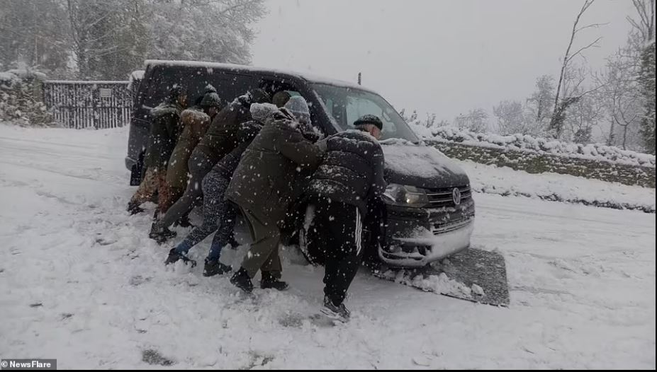 Χαρακτηριστικές είναι οι εικόνες σε βίντεο της Daily Mail, όπου ένα διώροφο λεωφορείο «κολλά» στα χιόνια στη συνοικία του Στάμφορντ Χιλ με τους επιβάτες να μην έχουν άλλη επιλογή από το να αναλάβουν δράση.