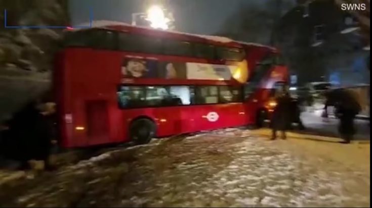 Χαρακτηριστικές είναι οι εικόνες σε βίντεο της Daily Mail, όπου ένα διώροφο λεωφορείο «κολλά» στα χιόνια στη συνοικία του Στάμφορντ Χιλ με τους επιβάτες να μην έχουν άλλη επιλογή από το να αναλάβουν δράση.