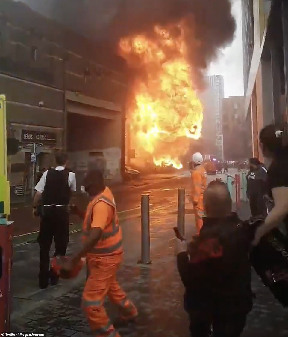 Σε βίντεο που έδωσε στη δημοσιότητα η Πυροσβεστική καταγράφονται πυκνοί καπνοί να “πνίγουν” τον λονδρέζικο ουρανό, ενώ χρήστες των social media κατέγραψαν τη στιγμή που σημειώθηκε έκρηξη στο σημείο. Στο σημείο επιχειρούν 15 πυροσβεστικά οχήματα και 100 πυροσβέστες.