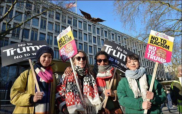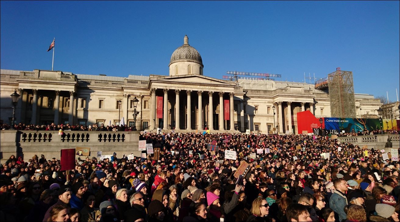 Αψηφώντας το κρύο το πλήθος, που απαρτιζόταν κυρίως από γυναίκες, πέρασε μπροστά από την πρεσβεία των ΗΠΑ με κατεύθυνση την πλατεία Τραφάλγκαρ. Μεταξύ των διαδηλωτών ήταν και ο δήμαρχος του Λονδίνου Σαντίκ Καν.