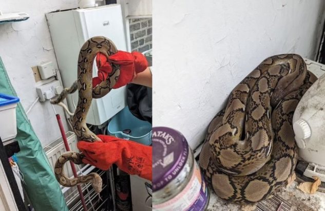 Σύμφωνα με την Daily Mail που αποκάλυψε πως το φίδι είναι πύθωνας, βρέθηκε στην κορυφή του λέβητα του σπιτιού στο Νότιο Λονδίνο. Η γυναίκα που το εντόπισε κάλεσε έντρομη το RSPCA (φιλανθρωπική οργάνωση για τα ζώα) που απομάκρυνε το ερπετό, το οποίο πιστεύεται ότι είχε εγκαταλειφθεί και σύρθηκε μέχρι το σπίτι στο οποίο βρέθηκε.