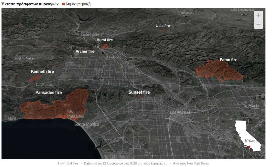 - Palisades Fire: Κάηκαν 23.713 στρέμματα, περιορίστηκε το 13%.