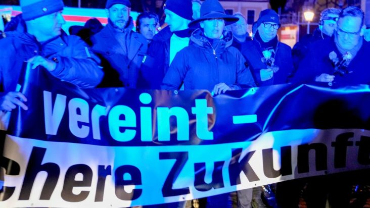 Ο γενικός γραμματέας της AfD Γιαν Βέντσελ Σμιτ επευθύνθηκε στο συγκεντρωμένο πλήθος υπερασπιζόμενος την αστυνομία: «Ο δολοφόνος είχε ανακοινώσει δημόσια τις προθέσεις του, ωστόσο η αίτησή του για άσυλο εγκρίθηκε. Δεν φταίνε οι αστυνομικοί για την επίθεση, αλλά η ηγεσία τους, η οποία τους δένει τα χέρια και τους αφήνει μόνους», δήλωσε ο κ. Σμιτ και έκανε λόγο για «τερατώδη πολιτική αποτυχία». Οι οπαδοί της AfD πραγματοποίησαν κατόπιν πορεία μέσα στην πόλη, φωνάζοντας συνθήματα για την απέλαση παραβατικών μεταναστών.