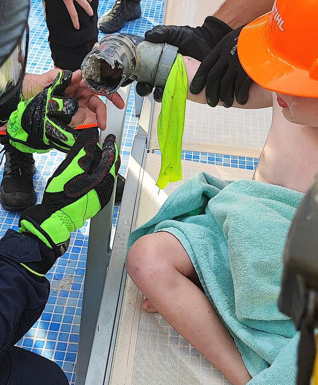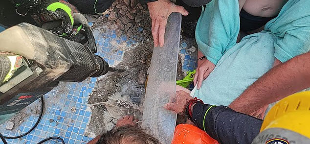 Αρχικά δεν κατάφεραν να τον ελευθερώσουν, κι έτσι αναγκάστηκαν να αδειάσουν την πισίνα με αντλίες και να σκάψουν μέχρι να φτάσουν στον σωλήνα.