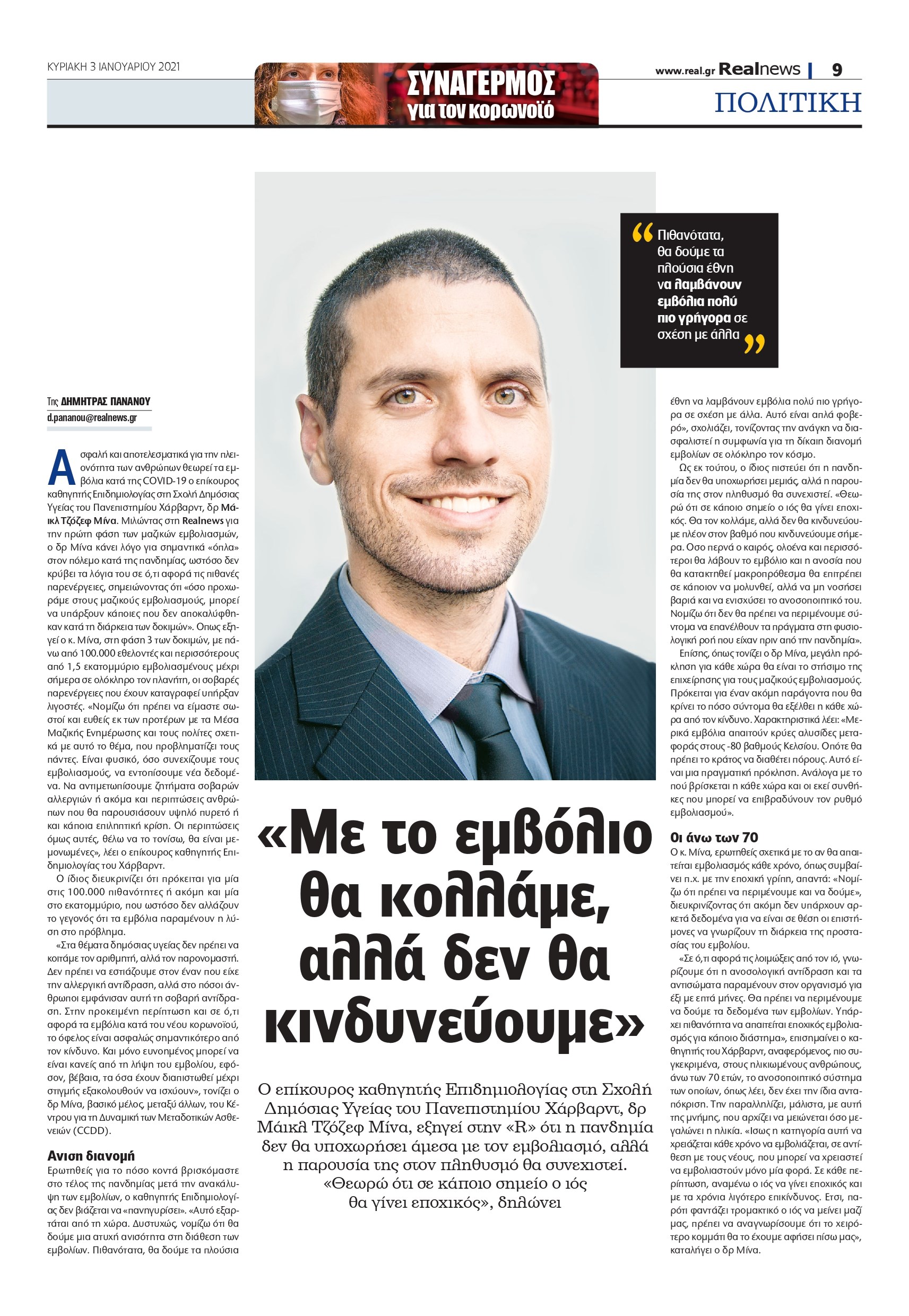 Aσφαλή και αποτελεσματικά για την πλειονότητα των ανθρώπων θεωρεί τα εμβόλια κατά της COVID-19 o επίκουρος καθηγητής Επιδημιολογίας στη Σχολή Δημόσιας Υγείας του Πανεπιστημίου Χάρβαρντ, δρ Μάικλ Τζόζεφ Μίνα.