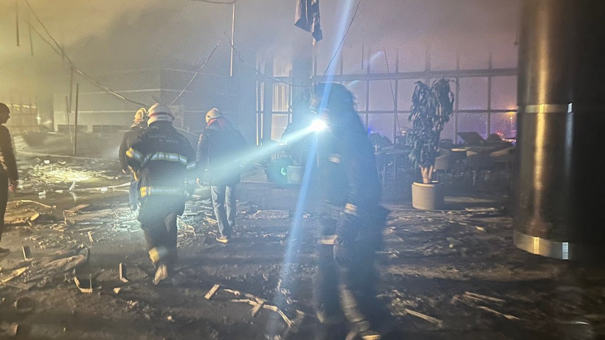Πιστεύεται ότι τα περισσότερα θύματα βρίσκονται μέσα στην αίθουσα, όπου η φωτιά και το νερό έχουν προκαλέσει σοβαρές ζημιές.