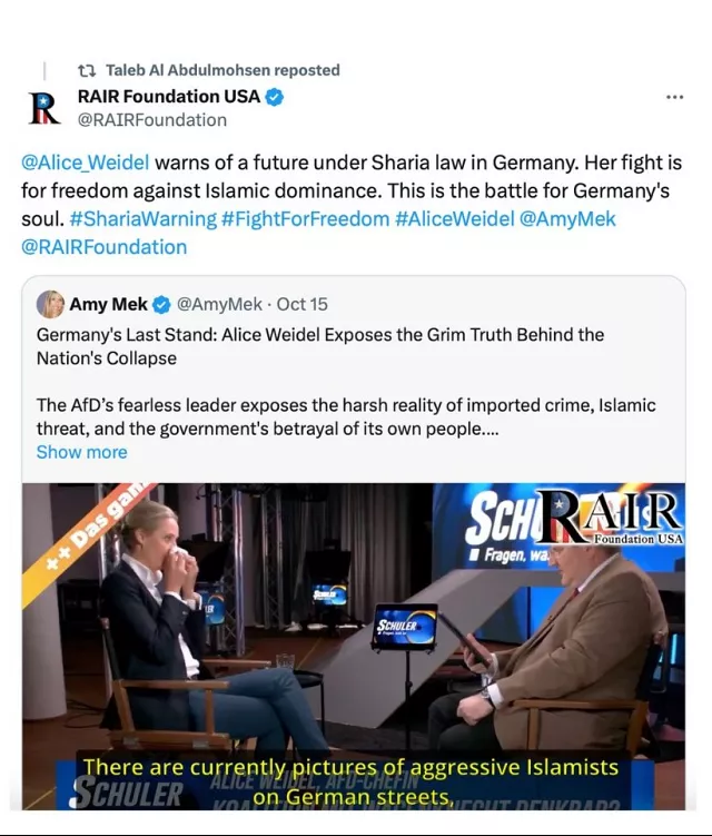 Όπως δήλωσε ο ειδικός σε θέματα τρομοκρατίας, Πέτερ Νόιμαν, «Έπειτα από 25 χρόνια σε αυτόν τον τομέα, πίστευα πως τίποτα δεν θα μπορούσε να με εκπλήξει. Αλλά ένας 50χρονος Σαουδάραβας πρώην μουσουλμάνος, που ζει στην Ανατολική Γερμανία, υποστηρίζει το AfD και θέλει να τιμωρήσει τη Γερμανία για την ανοχή της προς τους ισλαμιστές — αυτό δεν το περίμενα».