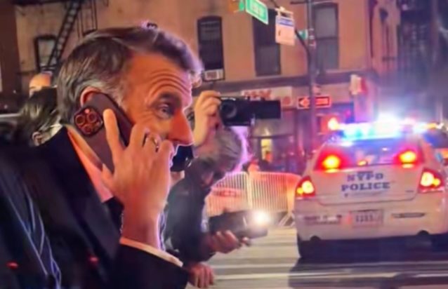 Ο Γάλλος πρόεδρος φάνηκε να μην χάνει το χιούμορ του και αποφάσισε να τηλεφωνήσει στον Ντόναλντ Τραμπ για να τον ενημερώσει για το πρόβλημα που προκαλεί στους δρόμους της αμερικανικής μεγαλούπολης. «Μάντεψε, περιμένω στον δρόμο τώρα επειδή τα πάντα είναι μπλοκαρισμένα για εσένα», ακούγεται να λέει ο Μακρόν στην τηλεφωνική συνομιλία με τον Τραμπ.