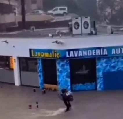 Το βίντεο κυκλοφορεί καθώς νέες καταιγίδες στην Ισπανία προκάλεσαν κλείσιμο σχολείων και ματαιώσεις τρένων, δύο εβδομάδες μετά τις πλημμύρες στην περιοχή της Βαλένθια που σκότωσαν περισσότερους από 220 ανθρώπους και κατέστρεψαν χιλιάδες σπίτια.