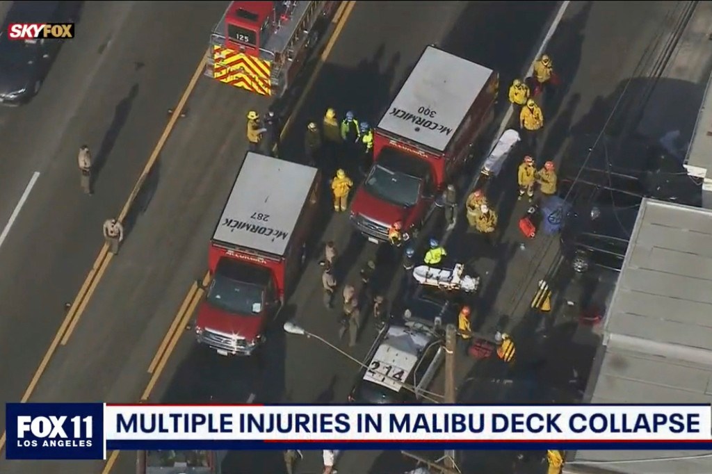 Ένα τρομακτικό βίντεο έρχεται στη δημοσιότητα από τη στιγμή που κατέρρευσε μπαλκόνι στο Μαλιμπού και περισσότεροι από δέκα άνθρωποι βρέθηκαν στο κενό με αρκετούς από αυτούς να τραυματίζονται. Δυνάμεις της Πυροσβεστικής Υπηρεσίας του Λος Άντζελες έσπευσαν στο σημείο γύρω στις πέντε το απόγευμα του Σαββάτου.