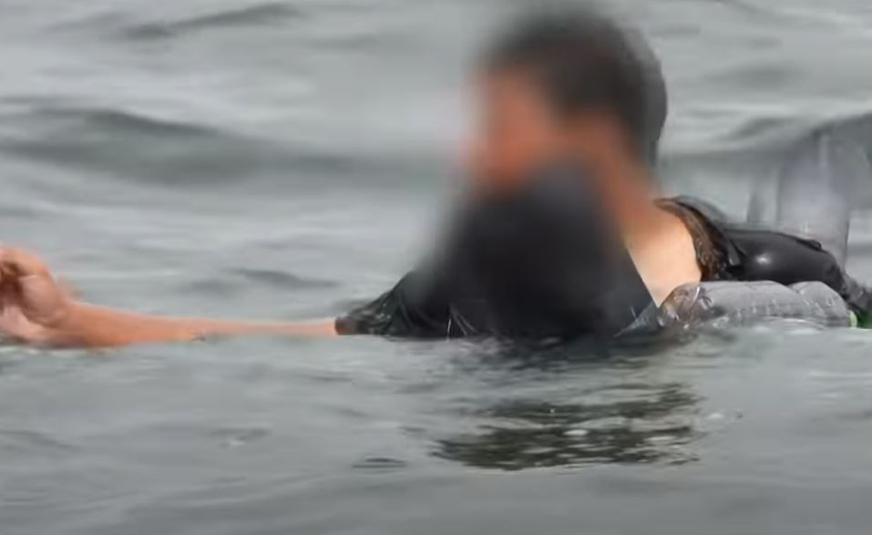 Το προσφυγόπουλο έχει δέσει πάνω στο σώμα και τα ρούχα του τα πλαστικά μπουκάλια που τον βοηθούν να κρατηθεί στην επιφάνεια του νερού. Έφτασε στη Θέουτα αφού κολύμπησε στη θαλάσσια περιοχή που βρίσκεται στα σύνορα Ισπανίας-Μαρόκου.