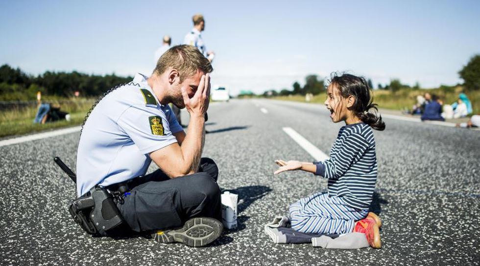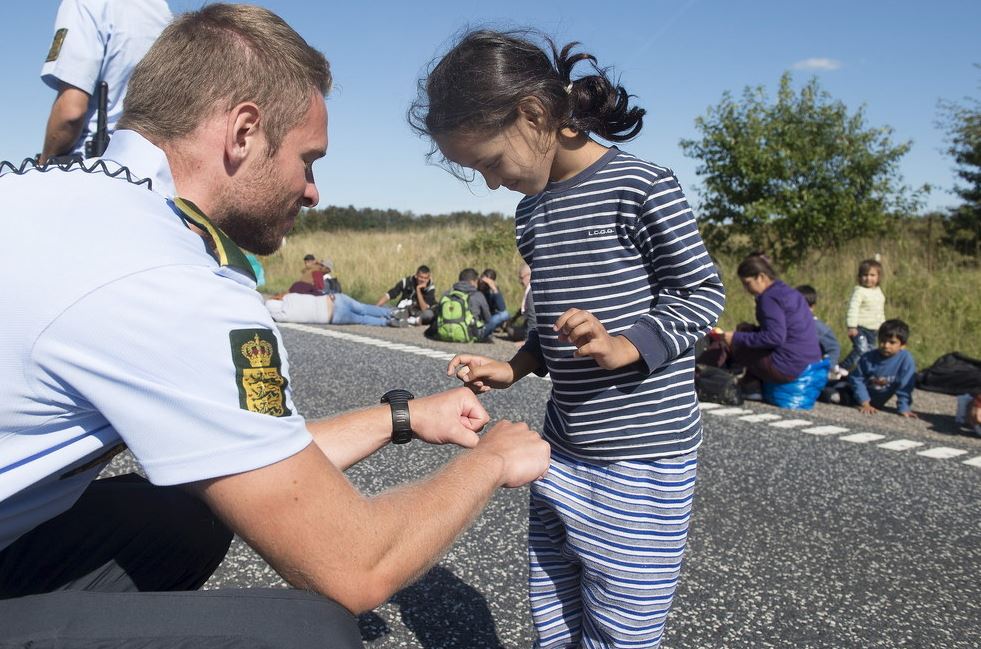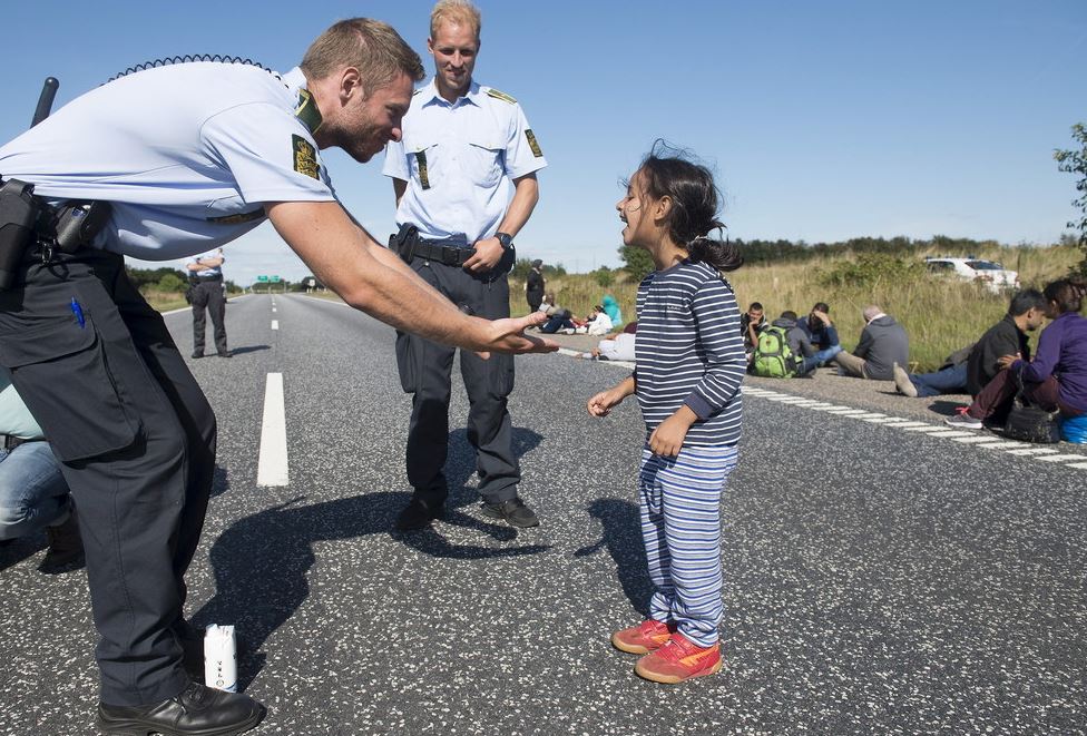 Συγκίνηση προκαλεί η φωτογραφία στην οποία απεικονίζεται ένας αστυνομικός από τη Δανία να παίζει με ένα κοριτσάκι – πρόσφυγα από τη Συρία.