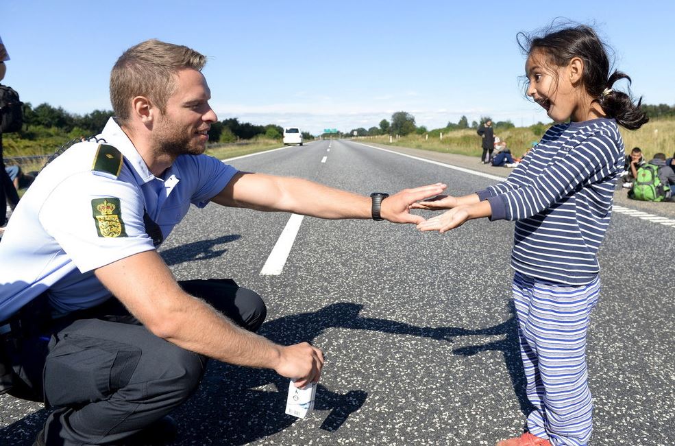 Συγκίνηση προκαλεί η φωτογραφία στην οποία απεικονίζεται ένας αστυνομικός από τη Δανία να παίζει με ένα κοριτσάκι – πρόσφυγα από τη Συρία.