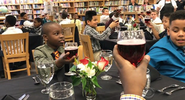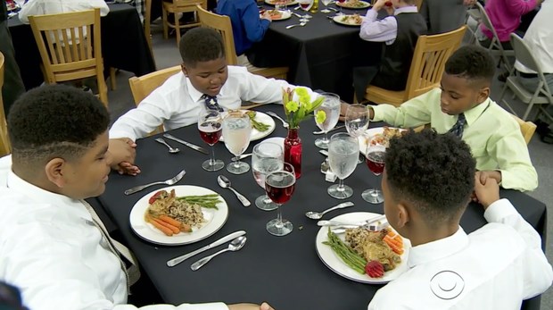 «Το φαγητό είναι εξαιρετικά καλό» είπε ένας μαθητής. Δύο φορές τον χρόνο οι μικροί τζέντλεμαν απολαμβάνουν ένα γκουρμέ γεύμα τριών πιάτων.
