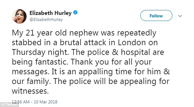 Η Λιζ Χάρλεϊ επέστρεψε εσπευσμένα από τις ΗΠΑ, στο Λονδίνο, μόλις έμαθε ότι ο ανιψιός της βρέθηκε μαχαιρωμένος. Ο Μάιλς Χάρλεϊ δέχθηκε την επίθεση από άγνωστο και η οικογένεια αλλά και η αστυνομία κάνει έκκληση για όποιον είδε το περιστατικό να επικοινωνήσει με τις αρχές.