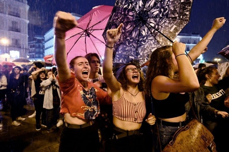 Υπό βροχή και καταιγίδα, χιλιάδες διαδηλωτές, στην πλειοψηφία τους γυναίκες, συγκεντρώθηκαν στην πλατεία Πουέρτα ντελ Σολ της Μαδρίτης, έπειτα από πρωτοβουλία οργανώσεων υπεράσπισης των δικαιωμάτων των γυναικών.
