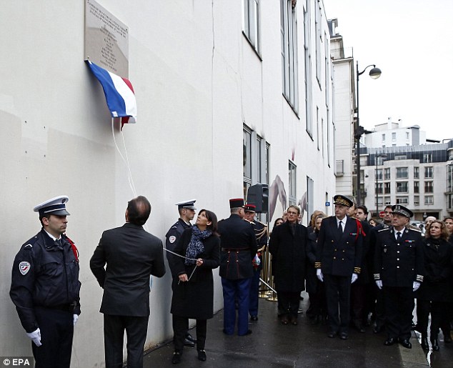 Ο Ολάντ, έχοντας στο πλευρό του τον Πρωθυπουργό της χώρας Μανουέλ Βαλς και τη δήμαρχο των Παρισίων Αν Ινταλγκό έκανε τα αποκαλυπτήρια της τιμητικής πλακέτας για τα 11 θύματα της τρομοκρατικής επίθεσης που σημειώθηκε στα γραφεία του περιοδικού Charlie Hebdo στις 7 Ιανουαρίου το 2015.