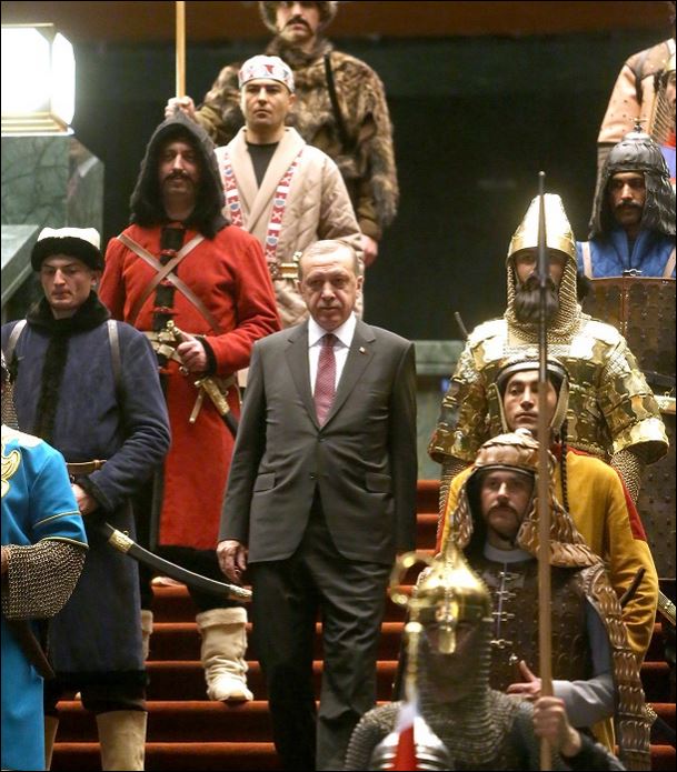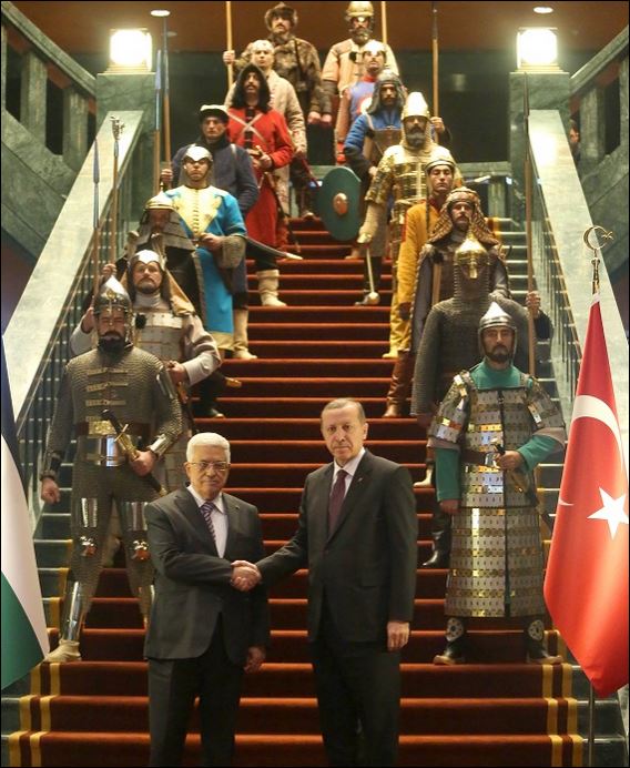 Το παλάτι του Τούρκου Προέδρου γέμισε από ηθοποιούς, ντυμένους με παραδοσιακές στολές της οθωμανικής αυτοκρατορίας, που φορούσαν μέχρι και ψεύτικα μουστάκια, με τον Παλαιστίνιο ηγέτη να μένει άφωνος από το θέαμα.