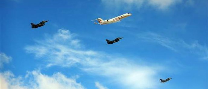 Το προεδρικό αεροσκάφος του Ερντογάν συνόδευαν τρία μαχητικά F-16 της Πολεμικής Αεροπορίας.