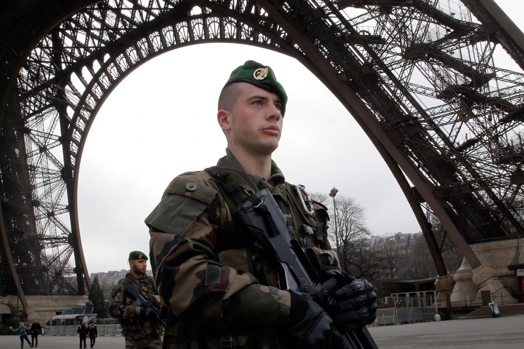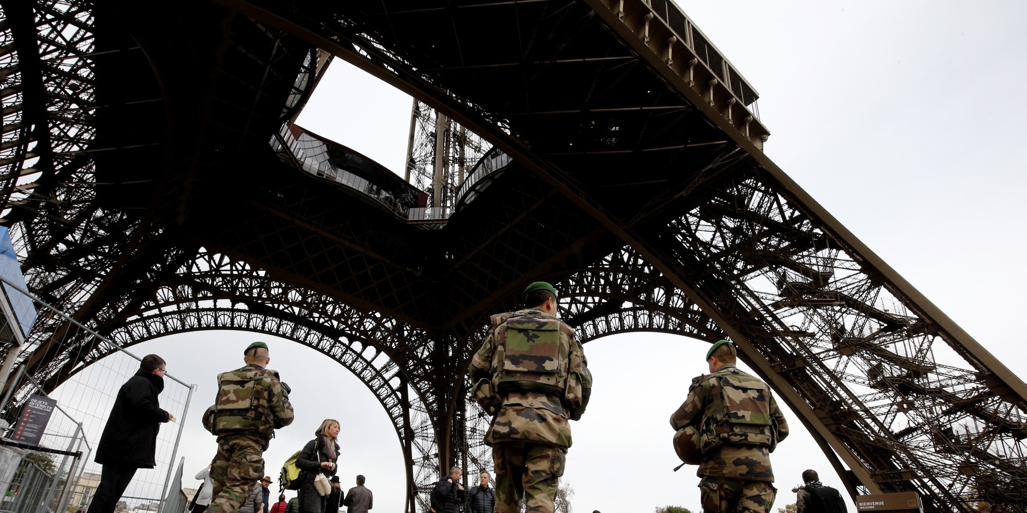 Έξω από τα μεγάλα πολυκαταστήματα Galeries Lafayette και Printemps, με τις στολισμένες βιτρίνες τους, οι πεζοί περνούν υπό τα βλέμματα οπλισμένων στρατιωτών και το πλήθος δεν είναι τόσο πυκνό όσο στο παρελθόν.