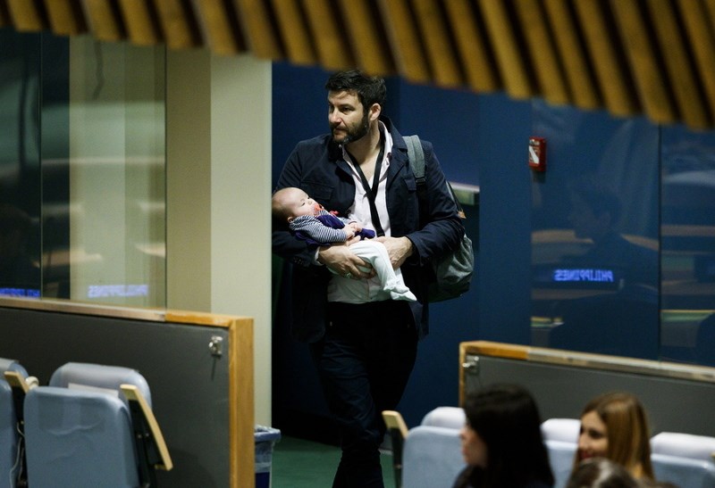 Ο μπαμπάς Κλαρκ Γκέιφορντ έκατσε στο ακροατήριο στην αίθουσα των συνεδριάσεων της Γενικής Συνέλευσης των 193 μελών μαζί με τη μικρή Νιβ, ενώ η μαμά εκφωνούσε ομιλία κατά τη διάρκεια της συνόδου για την ειρήνη στη μνήμη του Νέλσον Μαντέλα.