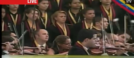Αυτή την ώρα Πρόεδροι και πρωθυπουργοί παρακολουθούν τον τραγουδιστή και την ορχήστρα να αποχαιρετούν με τη μουσική τον Πρόεδρο που αγάπησε η Βενεζουέλα.