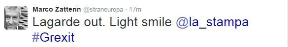 Χαμογελαστή αποχώρησε, πριν από λίγο, από το κτίριο που διεξαγόταν οι συζητήσεις των Θεσμών με την ελληνική αντιπροσωπεία, παρουσία του Αλέξη Τσίπρα, η Γενική Διευθύντρια του Διεθνούς Νομισματικού Ταμείου, Κριστίν Λαγκάρντ.