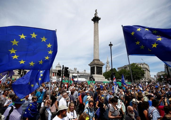 Χιλιάδες Βρετανοί, που είναι υπέρ της Ευρωπαϊκής Ένωσης, συγκεντρώθηκαν σήμερα στο κέντρο του Λονδίνου για να ζητήσουν από τη κυβέρνηση της Τερέζα Μέι να κάνει δημοψήφισμα για τους όρους του Brexit.