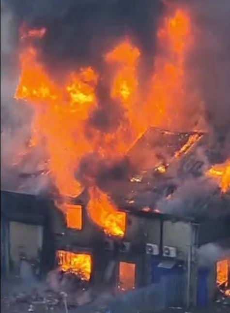 Η Πυροσβεστική συνιστά στους κατοίκους της περιοχής να κρατήσουν κλειστές τις πόρτες και τα παράθυρα «λόγω της μεγάλης ποσότητας καπνού που παράγεται από το συμβάν».