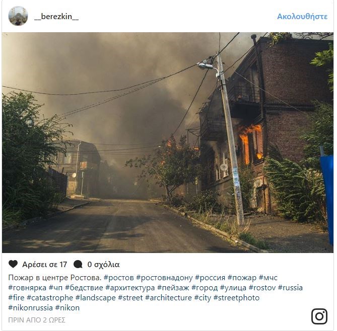 Εκατοντάδες κάτοικοι του Ροστόφ επί του Ντον αναγκάστηκαν να εκκενώσουν μια συνοικία στο κέντρο της πόλης εξαιτίας μιας μεγάλης πυρκαγιάς που έκαψε τουλάχιστον 30 σπίτια.