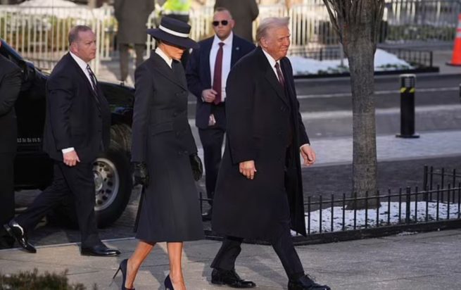 Το σύνολό της ήταν πολύ διακριτικό, αλλά εκκωφαντικά κομψό. Η Μελάνια από την κορυφή ως τα νύχια ήταν ντυμένη με μια σε ναυτικό μπλε εμφάνιση, καθώς στεκόταν στο πλευρό του συζύγου της Ντόναλντ Τραμπ. Μαζί έφτασαν στην Επισκοπική Εκκλησία του Αγίου Ιωάννη, λίγες ώρες πριν ορκιστεί ως ο 47ος Πρόεδρος των Ηνωμένων Πολιτειών.