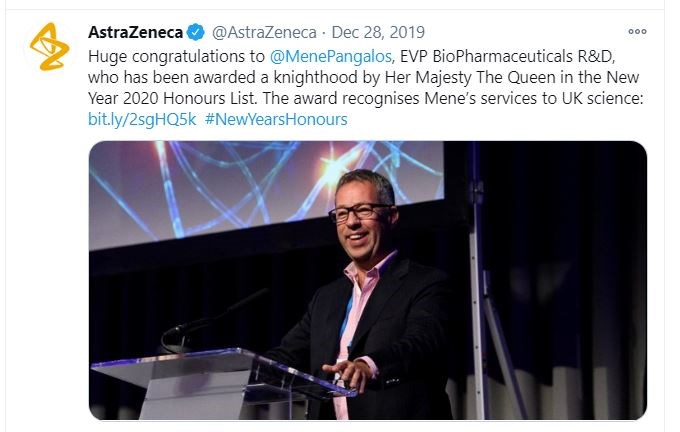 Με την AstraZeneca να ανακοινώνει ότι το εμβόλιό της μπορεί να έχει έως 90% αποτελεσματικότητα όλα τα βλέμματα στρέφονται στον άνθρωπο πίσω από το πρόγραμμα αυτό. Και δεν είναι κανείς άλλος από τον Μενέλαο Πάγκαλο, επικεφαλής της έρευνας και ανάπτυξης της φαρμακευτικής εταιρείας AstraZeneca όπου έχει τον τίτλο του εκτελεστικού αντιπροέδρου της BioPharmaceuticals R&D της AstraZeneca. Είναι γεννημένος στη Μεγάλη Βρετανία από Έλληνες γονείς.