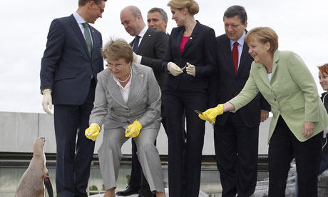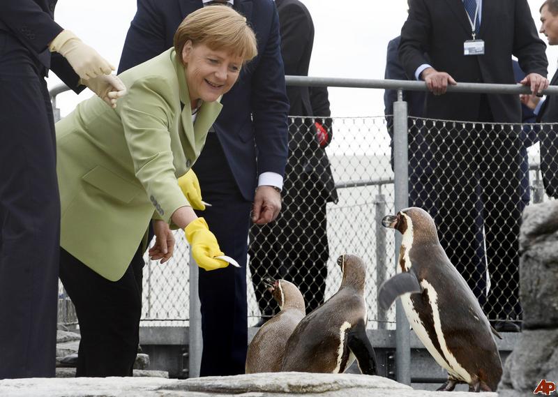 Η Γερμανίδα καγκελάριος, Άνγκελα Μέρκελ έχει και φιλοζωικές ανησυχίες, όπως φαίνεται και από τις φωτογραφίες που ακολουθούν…Όταν η σιδηρά κυρία του Βερολίνου, δεν είναι πολύ απασχολημένη με την επικύρωση του συμφώνου δημοσιονομικής πειθαρχίας, και με το να ασκεί πιέσεις στα υπόλοιπα κράτη μέλη της Ευρωζώνης προκειμένου να εφαρμόσουν τα προγράμματα λιτότητας… ταΐζει πιγκουίνους.