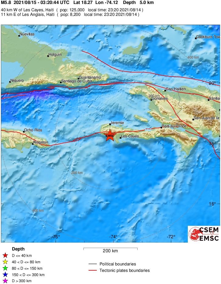 Μετασεισμός μεγέθους 5,8 βαθμών σημειώθηκε πριν από λίγο στην περιοχή της Αϊτής, ώρες αφότου ένας μεγάλος σεισμός στην περιοχή προκάλεσε τον θάνατο τουλάχιστον 304 ανθρώπων. Σύμφωνα με το Ευρωπαϊκό Μεσογειακό Σεισμολογικό Κέντρο (EMSC), ο μετασεισμός είχε εστιακό βάθος 5 χιλιόμετρα.