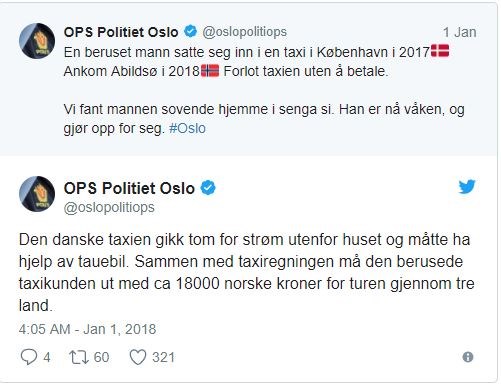 Ο άνδρας κάλεσε ένα ταξί και ζήτησε από τον οδηγό να τον μεταφέρει στο Όσλο, διασχίζοντας τρία Σκανδιναβικά κράτη. Όταν όμως έφτασε στον προορισμό του ο μεθυσμένος άντρας αρνήθηκε να πληρώσει τον οδηγό για το πολύωρο ταξίδι του.