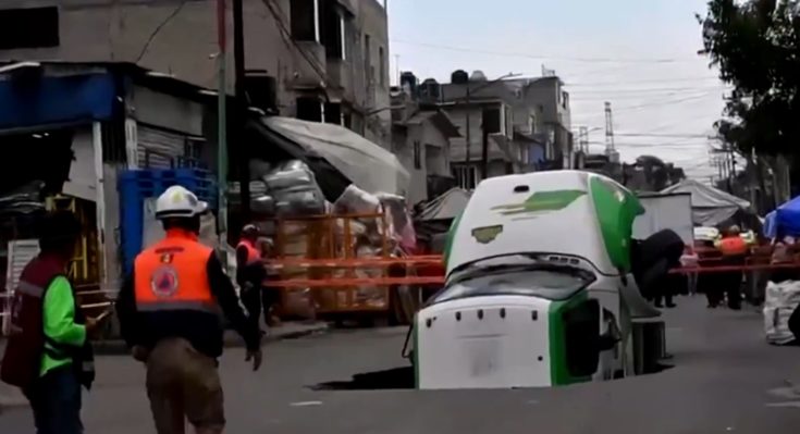 A soda delivery truck collapsed into a sinkhole in Mexico City with no injuries reported, according to local media pic.twitter.com/JeSR11Vqe6