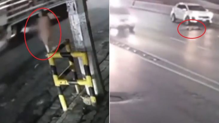 Κάποια στιγμή, η γυναίκα προσπάθησε να διασχίσει το δρόμο προς το διαχωριστικό στηθαίο, με τα αυτοκίνητα να περνούν από κοντά της με ταχύτητα. Ωστόσο, λίγα δευτερόλεπτα αργότερα, καθώς βρέθηκε στη αριστερή λωρίδα, χτυπήθηκε από ένα SUV.