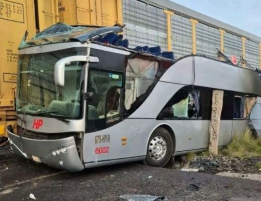 La mañana de este lunes, un autobús de pasajeros fue arrollado por un tren tras intentar ganarle el paso en el cruce ferroviario de la carretera Atlacomulco–Maravatío.