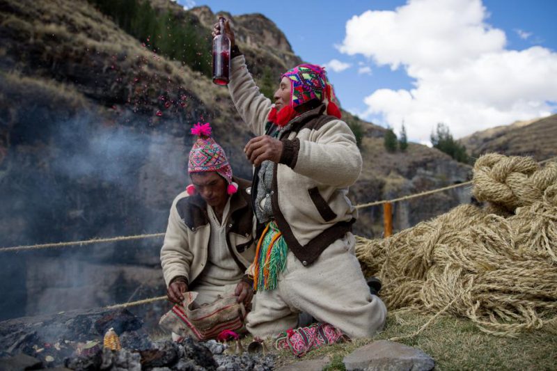 Μόλις ολοκληρωθεί η γέφυρα, οι κοινότητες γιορτάζουν με μουσική, προσευχές και γλέντι. Η παράξενη γέφυραQ’eswachaka είναι πλέον έτοιμη να εξυπηρετήσει τον κόσμο για άλλη μια χρονιά.