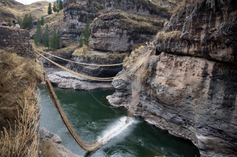 Από τις δύο πλευρές ενός ψηλού φαραγγιού στις Περουβιανές Άνδεις, μια αιωρούμενη γέφυρα δεσπόζει πάνω από τον ποταμό Απουριμάτς.