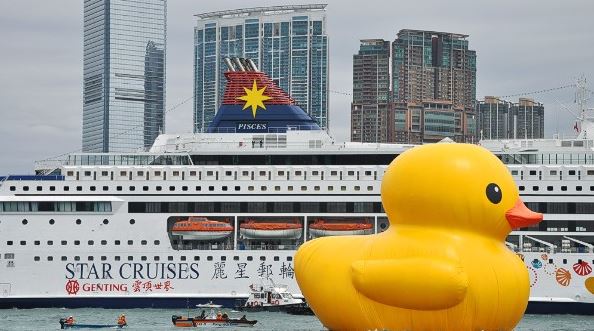 Στο πολυσύχναστο λιμάνι του Χονγκ Κονγκ, τράβηξε τα βλέμματα μια τεράστια φουσκωτή πάπια.