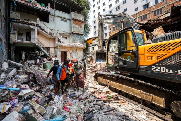 «Περίπου επτά άνθρωποι πέθαναν εδώ», ανέφερε ένας ιδιοκτήτης καταστήματος στην πρωτεύουσα της Μιανμάρ, όταν ο σεισμός έπληξε την περιοχή την Παρασκευή. «Ψάχνω για περισσότερους νεκρούς, αλλά ξέρω ότι δεν μπορεί να υπάρχει κανένας επιζών», πρόσθεσε.