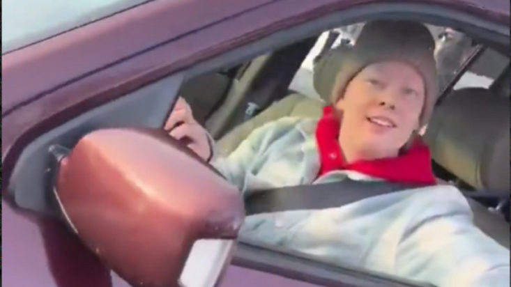 Η Ρεμπέκα απαντά: «Δεν αλλάζουμε τις πινακίδες μας κάθε πρωί, για να ξέρεις. Θα είναι η ίδια πινακίδα όταν μας μιλήσεις αργότερα, δεν πειράζει, είμαστε Αμερικανοί πολίτες». Λίγα δευτερόλεπτα μετά, ακούγεται να φωνάζει: «Θέλεις να μας επιτεθείς; Πήγαινε να φας κάτι, μεγάλε. Εμπρός», ενώ βιντεοσκοπεί τον αστυνομικό με το κινητό της.