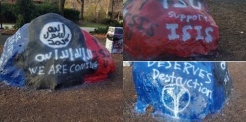 Στο πανεπιστήμιο Youngstown State του Οχάιο κάποιοι έγραψαν στο βράχο, που συνηθίζεται οι φοιτητές να αποτυπώνουν τις σκέψεις τους, μηνύματα υποστήριξης για τον ISIS.